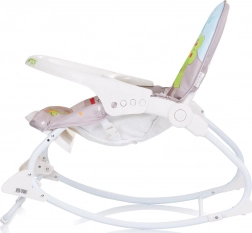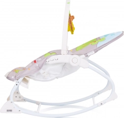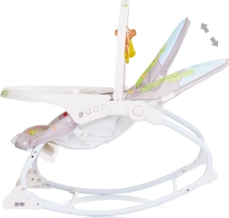 La seggiolina a dondolo per bambini Enjoy dinosauro offre al bebè tranquillità e divertimento in uno. La combinazione di melodie e delicate vibrazioni aiuta ad addormentare e calmare, mentre la barra giochi con giocattoli sostiene lo sviluppo dei sensi e della motricità. Grazie al doppio settaggio dello schienale è facile adattare la posizione per il riposo o il gioco.