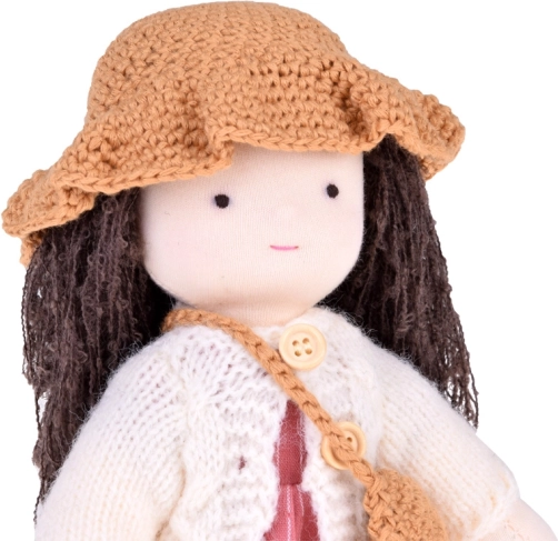 L'intera bambola è realizzata con tessuti piacevoli e forme arrotondate, risultando sicura, soffice e ideale per abbracci quotidiani e un gioco tranquillo.