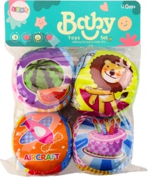 Il set di 4 morbide palline per bambini è un giocattolo educativo e interattivo che unisce apprendimento e divertimento. Ogni pallina del set ha motivi unici che favoriscono l’apprendimento attraverso il gioco. Le colorate illustrazioni di frutti, animaletti e dolcetti aiutano i bambini a riconoscere diversi oggetti. Una pallina presenta illustrazioni dei principali mezzi di trasporto, ciascuno etichettato in inglese per familiarizzare i piccoli con una lingua straniera.