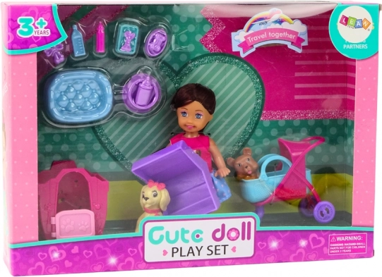 Questo set colorato include una bambola con lunghi capelli castani in abito rosa e azzurro, due adorabili cagnolini, una cuccia rosa, un passeggino e numerosi accessori per la cura quotidiana. Grazie alle tante scenette, i bambini esercitano la responsabilità e sviluppano abilità comunicative.
