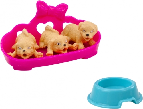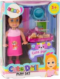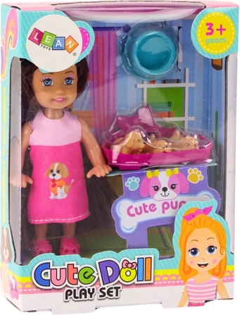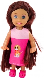 .La piccola bambola con tre cagnolini nella tana è un giocattolo adorabile e compatto, ideale per le bambine che amano le bambole e gli animali. La bambola indossa un abito colorato e accuratamente rifinito e i suoi lunghi capelli castani possono essere pettinati e acconciati a piacere. È accompagnata da tre piccoli cagnolini nella cuccia, che rendono il gioco ancora più divertente.