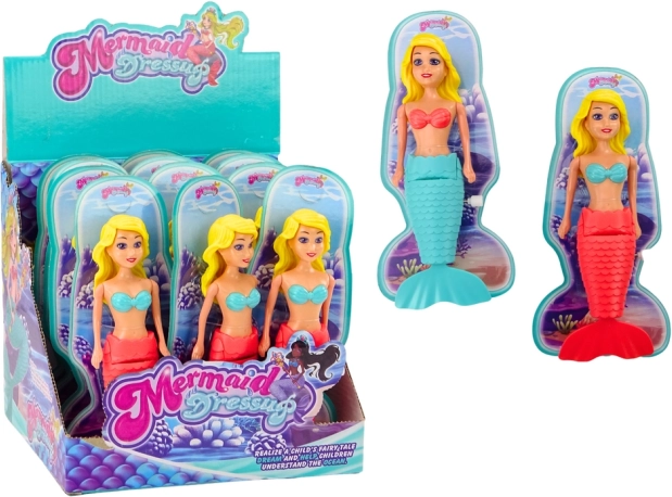 La bambola ha lunghi capelli biondi che le donano fascino. La sua coda turchese o rosa presenta un bellissimo design che ricorda le classiche sirenette delle fiabe.