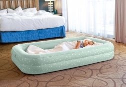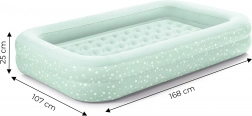 Questo materasso gonfiabile è progettato per i bambini e presenta bordi leggermente rialzati per impedire loro di cadere dal materasso. È ideale per l'uso interno come letto per bambini.