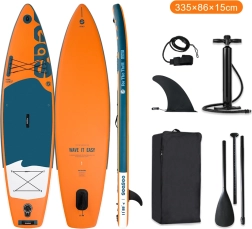 Scopri il SUP gonfiabile BEACH DOLPHIN in colore arancione – set completo per principianti e avanzati. Grazie alle dimensioni 335 × 86 × 15 cm offre ottima stabilità, portata fino a 150 kg e lunga durata grazie al materiale in PVC ad alta densità. Inclusi tutto ciò che ti serve: pagaia, pompa, zaino e kit di riparazione.