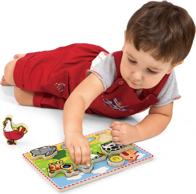 Il colorato puzzle per bambini con tema della fattoria include sei animali e supporta lo sviluppo dell'immaginazione e della memoria dei bambini.
