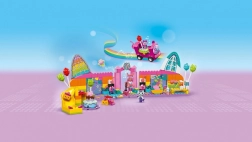 Sala da ballo di Gabi non è solo disco! Include Gabi, Daniel Gatto, Fata Gatta, Gatto Marino e tanti accessori musicali - tra cui il bus festa con console DJ, la pista da ballo rotante, la chitarra, due microfoni e una sfera da discoteca scintillante. Lo spazio è pronto per un divertimento senza fine! Gli accessori includono palloncini, pattini, popcorn e due bicchieri pieni di sorbetto nella zona relax, così come catapulta e lattine per un gioco di abbattimento. Il set è completato da una torta per Gabi, regali e uno scivolo. Comprende un grande pezzo di partenza per un facile assemblaggio per i bambini. Una guida a colori con immagini offre istruzioni chiare.