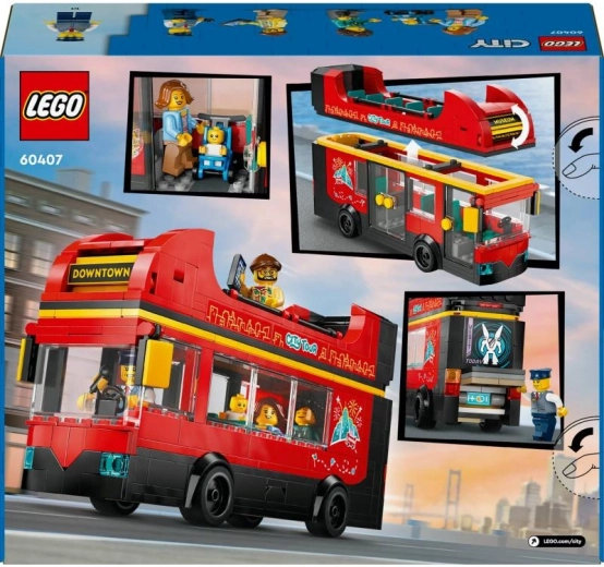 L'autobus rosso a due piani della linea LEGO City offre ai bambini un divertimento autentico su due livelli. Ruota la tabella con la destinazione e parti per il porto, il centro, il museo o il parco. Grazie a cinque minifigure, incluso un bebè nel passeggino, e accessori come microfono, telefono e fotocamera, il gioco di ruolo è ancora più ricco.