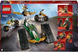 Il set Veicolo ninja multifunzionale offre ai bambini da 9 anni in su un’intensa dose di azione ninja. Il grande veicolo può essere facilmente diviso in quattro modelli più piccoli: l’aliante di Sora con shooters, il fuoristrada di Lloyd e le moto di Cole e Nya. Grazie alla combinazione di cingoli, ruote e cockpit, il gioco è fluido e creativo.