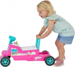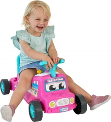 Adorabile cavalcabile rosa in stile camioncino dei gelati che sviluppa la motricità e la fantasia. Offre musica e luci lampeggianti, clacson e volante, vano portaoggetti sotto il sedile e maniglia posteriore come supporto per i primi passi.