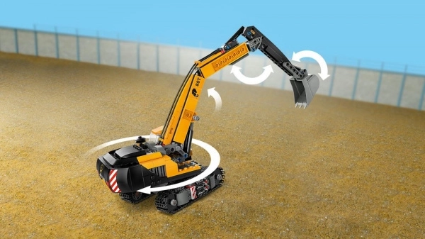 Costruisci il tuo cantiere con un robusto escavatore dall’aspetto realistico. Grazie ai cingoli ad alta aderenza, al braccio versatile e alla cabina completamente girevole, i bambini possono esplorare funzioni realistiche e sviluppare l’immaginazione. Tre minifigure – autista, operaio e architetto – insieme a barriere e attrezzi portano le storie a un livello superiore.