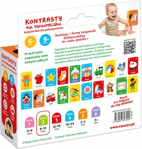 Esplora il mondo con il tuo bebè grazie al libricino a contrasto CzuCzu con cordino. L’elevato contrasto delle illustrazioni stimola la vista, favorisce lo sviluppo del linguaggio e la concentrazione. Grazie ai pratici fori e al cordino lo puoi facilmente appendere sopra la culla o portare con te in viaggio.