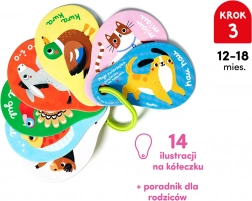 - 14 illustrazioni (7 carte rigide fronte-retro), anello di congiunzione, guida per i genitori