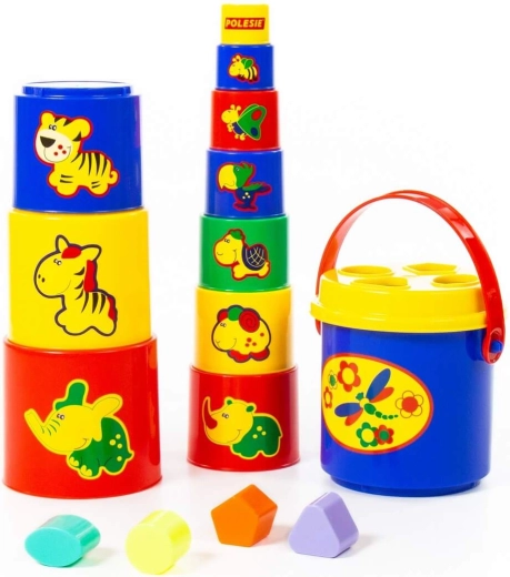 Il giocattolo è un ottimo compagno per i più piccoli e, tramite il gioco e le immagini, insegna nuovi animaletti, colori e forme. Inoltre, la piramide può essere facilmente riposta nel secchiello in dotazione dopo l’uso.