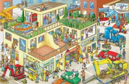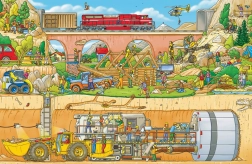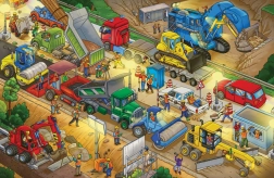 Nel libro ci sono scene illustrate in modo evidente che mostrano l'ambiente vivace del cantiere con diverse macchine da costruzione.