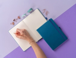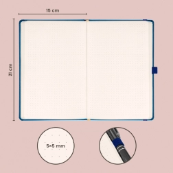 Scopri la perfetta combinazione di classicità ed eleganza con il nostro taccuino a punti blu. Questo taccuino con dimensioni di 15 x 21 cm è progettato pensando sia alla praticità sia allo stile. La superficie è realizzata per consentire una facile stampa di loghi aziendali, rendendolo una scelta ideale per l'uso professionale e personale.