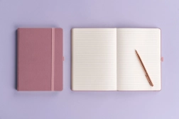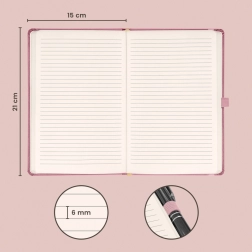 Questo taccuino in colorazione rosa combina classicità ed eleganza, rendendolo una scelta eccellente per ogni occasione. La sua superficie strutturata permette una facile punzonatura dei loghi aziendali. Le dimensioni 15 x 21 cm offrono spazio sufficiente per le tue idee e piani.