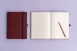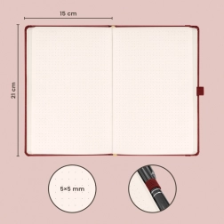Taccuino a punti in un elegante colore bordeaux, ideale per gli amanti della classicitá e dell'eleganza. Perfetto per prendere appunti con la possibilità di personalizzazione con il logo aziendale.