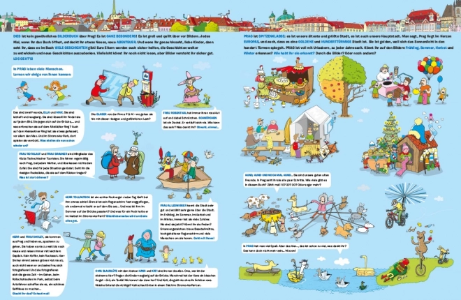 Scoprite Praga attraverso gli occhi dei bambini con un libro riccamente illustrato in tedesco. I bambini visiteranno il Ponte Carlo, il Castello di Praga, la Piazza di Malá Strana, la Piazza della Città Vecchia con l'orologio astronomico e il parco Stromovka – e lungo il percorso li accompagneranno simpatici personaggi e spettri praghesi. Le immagini raccontano storie anche a chi non sa ancora leggere.