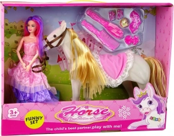 Il burattino ha braccia e gambe articolate, consentendo diverse posizioni, come stare in piedi o seduti sul cavallo. Il suo abbigliamento elegante le conferisce l'aspetto di una vera principessa. Il cavallo è realizzato in un materiale piacevole e rappresenta fedelmente l'aspetto reale dell'animale.