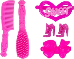 Il set comprende un pettine rosa, una spazzola e altri accessori per lo styling che supportano la cura e la creatività durante il gioco.