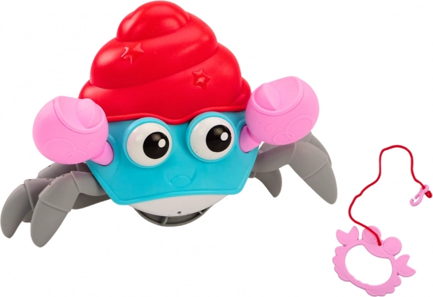 Il giocattolo è dotato di un quadrante rotante sul retro, che può essere girato per caricarlo. Il granchio si muove, imitando il movimento naturale del granchio, incoraggiando i bambini a interagire e osservare come funziona il meccanismo.