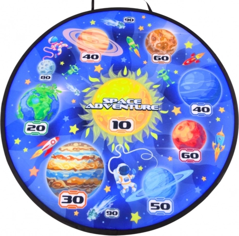 Il colorato bersaglio in tessuto Space Adventure con velcro offre un gioco sicuro senza punte affilate. Le zone ben definite con punteggio favoriscono la competizione e l’apprendimento del calcolo.
