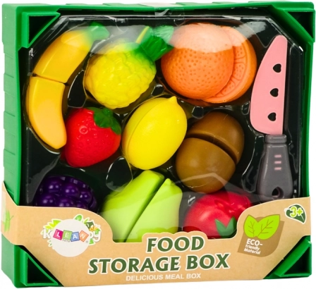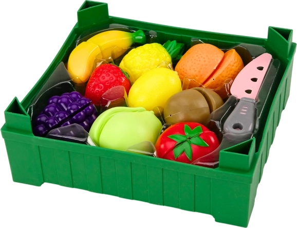 - 9 pz di frutta, coltello di plastica sicuro, cassettina verde