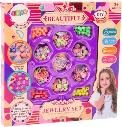 Il set permette di creare diversi gioielli, ad esempio braccialetti e collane. I bambini possono creare i propri motivi, sviluppando creatività, manualità e coordinazione occhio‑mano.