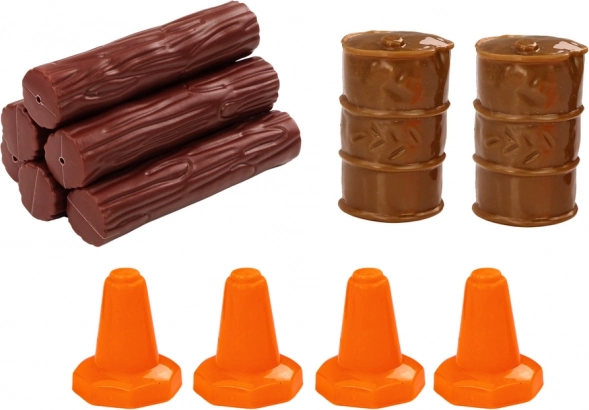 - Carico e accessori: tronchi, 4 coni, 2 barili.