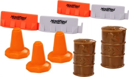 2 barili, 8 coni stradali, 4 barriere stradali (arancione-bianco)