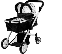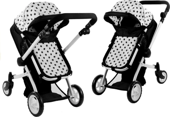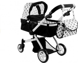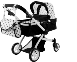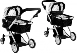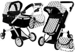 Passeggino per bambole Alice 2 in 1, profondo e sportivo, pois nero‑bianco
