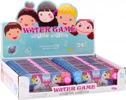 Scopri il classico gioco ad acqua in una versione moderna rosa con un tenero unicorno. Nella vaschetta trasparente fluttuano anelli colorati e il tuo compito è, tramite il getto d’acqua azionato dai pulsanti a pressione, infilarli su due punte. Ogni pressione crea un flusso diverso – tutto dipende da precisione e sensibilità.