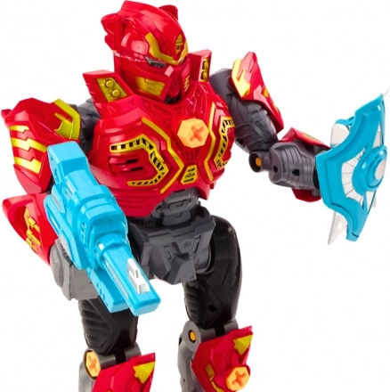 Il set include utensili sicuri per bambini – trapano e cacciavite – con punte intercambiabili per compiti diversi. Grazie agli effetti luminosi e sonori, il gioco è ancora più coinvolgente. Il robot è dotato anche di scudo turchese e arma, così i bambini possono inventare missioni e storie personali e sviluppare la fantasia.