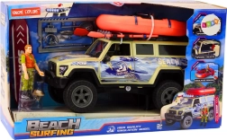 L'auto da spiaggia per surfisti è il giocattolo perfetto per i giovani appassionati di avventure acquatiche. Questo veicolo di colore sabbia, arricchito con dettagli di surf, si distingue per le luci posizionate sul tetto che si illuminano con la pressione di un pulsante ed emettono suoni realistici del motore. Sul tetto, troverai un gommone con remi che aggiunge un tocco di realismo al gioco. Le portiere e il bagagliaio apribili permettono di posizionare facilmente le figurine all'interno del veicolo.