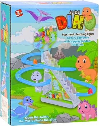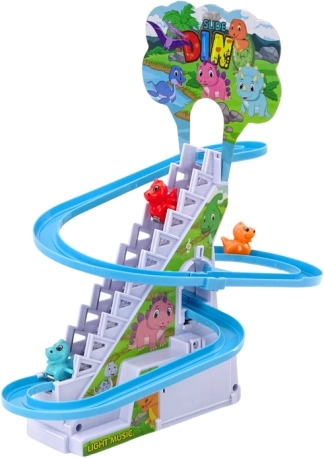 Questa colorata pista da discesa con dinosauri è progettata per un gioco intuitivo, coinvolgente e ripetutamente divertente. I bambini posizionano le figurine sulle scalette, avviano il meccanismo e osservano i dinosauri che si arrampicano da soli verso l’alto e scendono velocemente. Luci e suoni aumentano l’entusiasmo e sviluppano la percezione sensoriale.