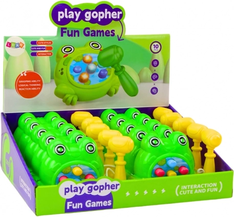 Il gioco offre 2 modalità – solo effetti luminosi, oppure luce + musica, così i bambini scelgono ciò che preferiscono. Il martelletto è fissato con un cordino, il che aumenta la praticità ed elimina il rischio di perderlo. Durante il gioco i bambini allenano prontezza, riflessi e motricità fine.
