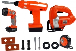Scopri un gioco da costruttore divertente e sicuro con questo set di attrezzi per bambini a batteria. Include trapano a batteria con funzione avvitatura/svitatura, sega alternativo con suono realistico, torcia potente con angolo di luce regolabile e pratici accessori. Sviluppa la motricità fine, la creatività e il pensiero logico per bambini dai 3 anni.