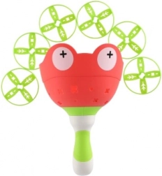 Fantastico giocattolo per bambini che amano i giochi d'azione! Tirare il cavo del lancio a forma di rana e osservare quanto in alto voleranno le eliche pronte al decollo. Perfetto per lo sviluppo della coordinazione e il divertimento.