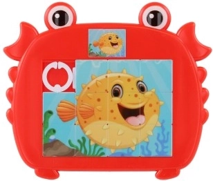 Puzzle scorrevoli per bambini a forma di granchio con animali marini
