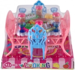 Allegri elementi rosa e azzurri con il tavolo bianco creano un mix di colori accattivante. I mini accessori realistici danno al gioco del ristorante il giusto tocco.
