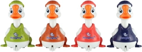 Semplice meccanismo a retrocarica: premi la testa della paperella e partirà in avanti senza batterie. Divertimento e sviluppo della motricità.