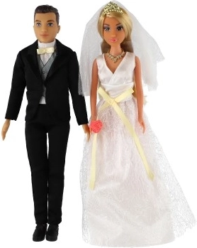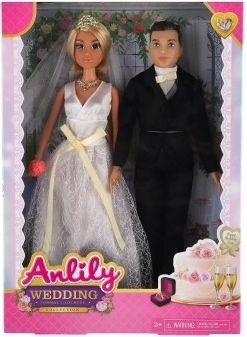Questo set nuziale di bambole ANLILY porta nel gioco dei bambini romanticismo e stile. La sposa risplende in un abito bianco di pizzo con velo e diadema, lo sposo è pronto in un elegante smoking nero con camicia bianca e papillon. Grazie alla robusta lavorazione in plastica, le bambole sono perfette per il gioco quotidiano.