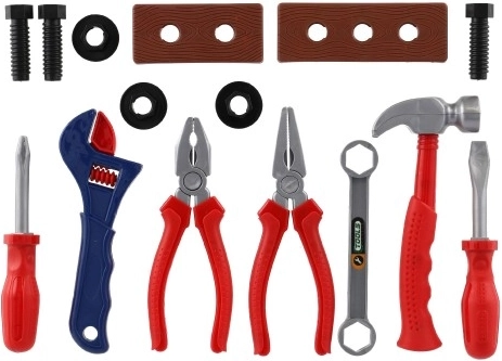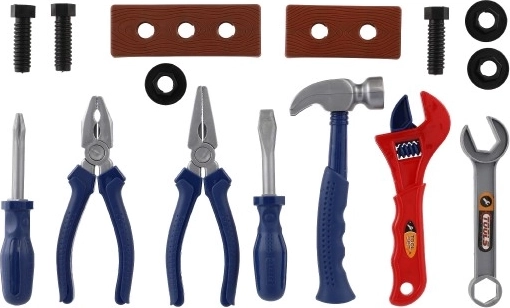 Preparati a ore di gioco creativo e apprendimento. Il set di attrezzi in plastica per bambini sembra vero, ma è leggero, resistente e sicuro per le mani dei più piccoli. Favorisce il ruolo del piccolo riparatore e sviluppa la coordinazione occhio–mano, la pazienza e l'immaginazione.