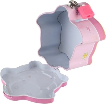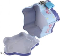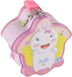 Grazioso e resistente salvadanaio in metallo con lucchetto aiuta i bambini, in modo divertente, a gestire il denaro. Nella parte superiore ha una fessura per l’inserimento delle monete, così i risparmi restano al sicuro. Le dimensioni compatte 10 × 6 cm si adattano a ogni tavolo o mensola e, grazie a 4 varianti di colore, i bambini lo adoreranno subito. Fornito in sacchetto.
