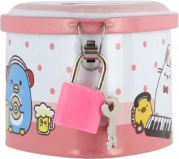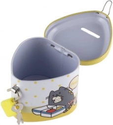 Il salvadanaio è piccolo e leggero, quindi trova posto su una mensola, sulla scrivania o nello zainetto. L’apertura nel coperchio consente di inserire comodamente le monete e le chiavi sono sempre a portata di mano. Un regalo perfetto per i bambini che imparano a gestire il denaro.