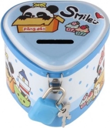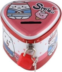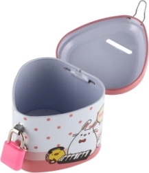 Questo salvadanaio per bambini in latta a forma di cuore combina un design grazioso con funzioni pratiche. Grazie al corpo metallico robusto e al lucchetto con chiavi offre un posto sicuro per i risparmi, mentre le illustrazioni colorate motivano i bambini a risparmiare con regolarità.
