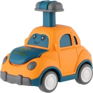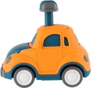 Pratico meccanismo push con inerzia: premi il pulsante e la macchinina scatta in avanti da sola. Divertimento senza bisogno di ricarica o batterie.