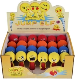 Posiziona il corpo del personaggino sul tavolo o sul pavimento, schiaccia e rilascia. La pallina rimbalza creando un salto scenografico. Perfetta per giochi di coordinazione, piccole gare e anche come antistress.