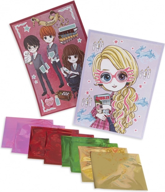 Questo set creativo divertente e semplice porta tra le tue mani la magia del mondo di HARRY POTTER. Sulle due immagini tematiche con Harry, Hermione, Ron e Luna si trovano aree autoadesive che, una volta scoperte, decorerai con le lamine incluse. In pochi minuti creerai belle immagini dal lucente effetto metallico, ideali per decorare o come regalo originale.