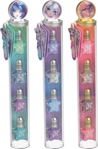 Un kit creativo per piccole appassionate di nail art offre smalti per unghie a base d'acqua e tutto il necessario per un design divertente: 4 smalti, 40 adesivi e una lima per unghie per rifinire la forma.